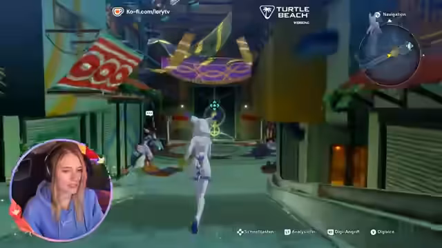 07:20:51Die Spielsituation wird komplexer, als ein Fernseher ausgeschaltet wird und eine gestörte Figur erscheint. Die Streamerin muss einen Weg finden, den Fernseher wieder einzuschalten und fortzubewegen. Sie findet eine Stromdose und den Fernseher in einem anderen Raum. Die Lösung des Rätsels erfordert das Positionieren eines Einkaufswagens, um über eine Wasserstelle zu springen und den Strom wiederherzustellen. Dies geschieht mit Unterstützung des Chats, der Taktiken vorschlägt.