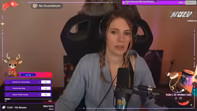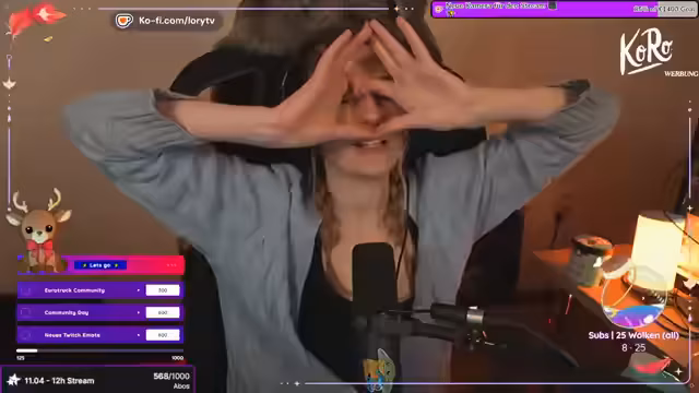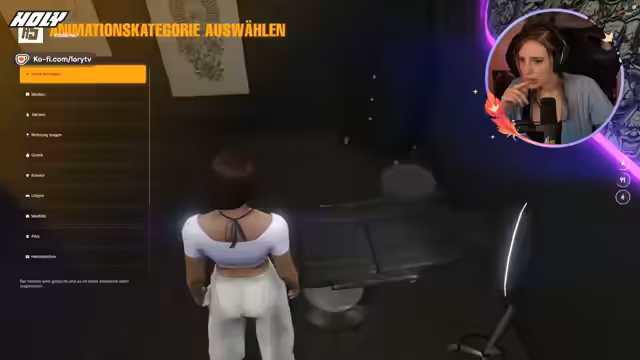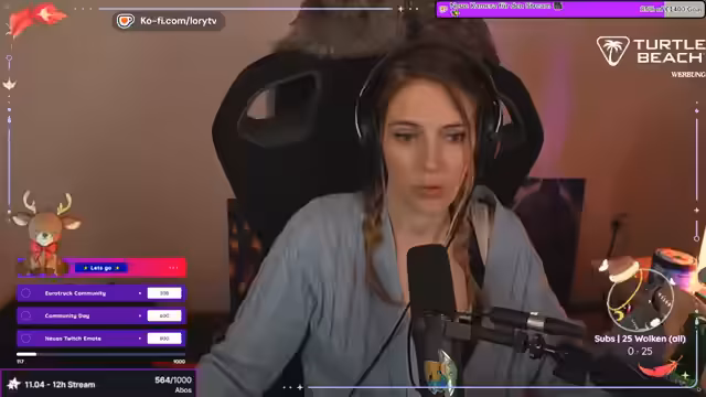 03:24:38Nachdem das Studio betreten wurde, schlägt die Begleiterin die Auswahl im Katalog vor. Die Streamerin entscheidet sich nach anfänglicher Verwirrung und intensiver Betrachtung für ein Platin-Herz in lila Farbe am Bauchnabel. Da die Piercerin jedoch noch nicht anwesend ist, wird gewartet. Unterdessen erwähnt die Streamerin ihr Alter von 42 Jahren und interagiert mit dem Chat, während sie auf die fachliche Hilfe wartet.