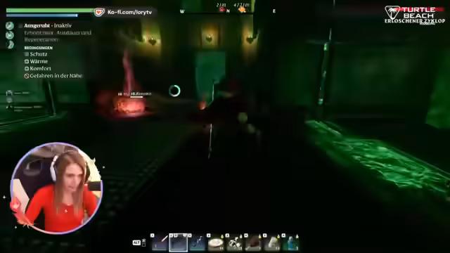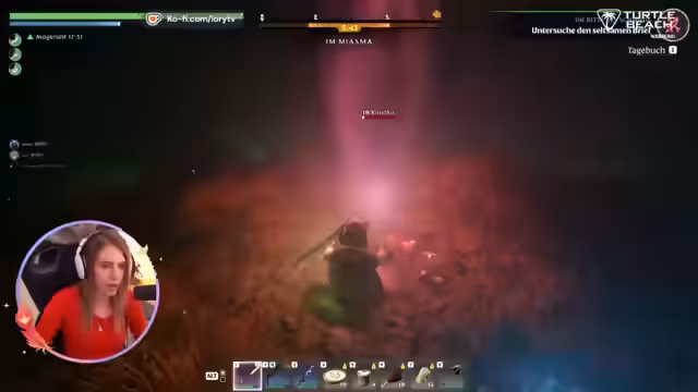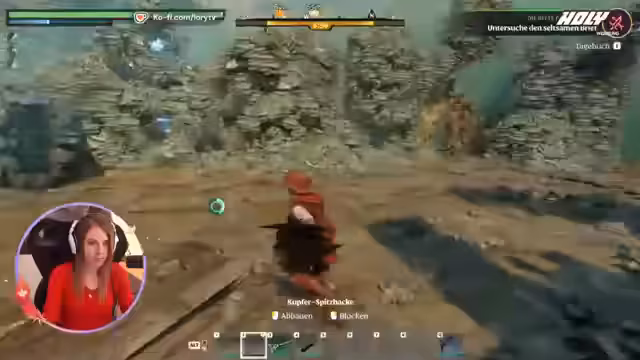 04:25:47Nachdem die Gruppe den Weg in den Dungeon gefunden hat, kämpfen sie sich durch enge Höhlen und treffen auf starke Feinde. Ein Heiler-Gegner wird als besonders bedrohlich eingestuft, da er den Spieler mit einem Treffen ausschalten kann. Nach einem dramatisischen Kampf, in dem die Streamerin stirbt, wird sie vom Zuschauer wiederbelebt, und sie können den Flammenkern erfolgreich looten.