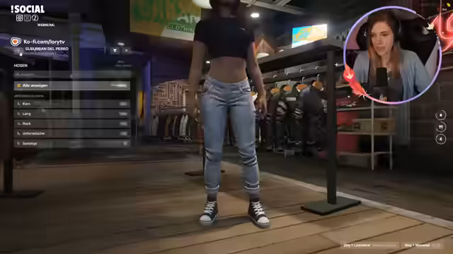 02:04:08Nach erfolgreicher Wiederverbindung wird eine Mission gestartet, bei der ein Ersatzreifen für einen Mechaniker aus einem südlichen Autohaus gestohlen werden muss. Anschließend wird eine gezielte Shopping-Tour unternommen, um spezielle Unterwäsche zu finden. Dies gestaltet sich als aufwendiger Prozess, da das gesuchte violette Design anfangs nicht auffindbar ist und der Streamer nach längerem Suchen eine endgültige Entscheidung trifft.