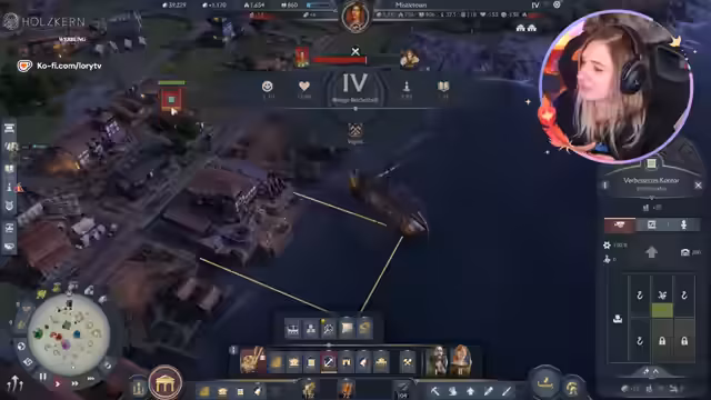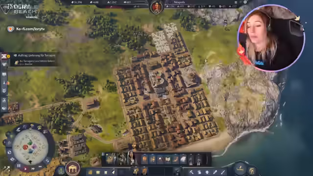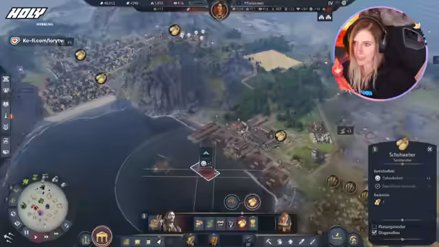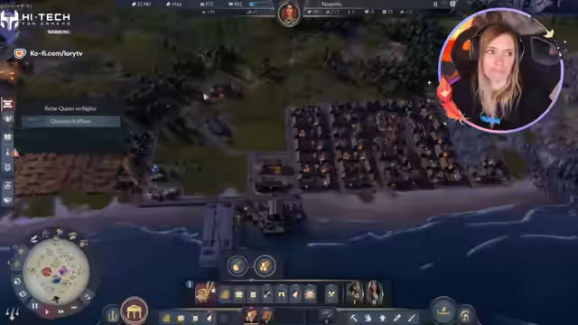 01:41:40In der Stadt bricht ein Feuer aus, was die Streamerin als schlecht empfindet, da sie kein Geld für die Feuerwehr hat. Es wird über die Probleme des Anno-Multiplayers diskutiert, insbesondere über Desynchronisationen. Es wird erwähnt, dass es manchmal funktioniert, manchmal aber auch mehrmals neu gestartet werden muss. Die Streamerin schließt ein Handelsabkommen ab, um Geld zu verdienen und die Stadt zu retten. Es wird über einen möglichen Angriff des Mitspielers Michael spekuliert, da dieser einen Nicht-Angriffspakt ablehnt. Die Streamerin ist empört und droht mit Krieg, falls sie angegriffen wird. Sie bittet um Würstchen, da sie diese noch nicht erhalten hat.