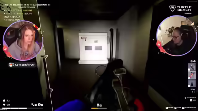01:09:03Der Stream beginnt mit der Aufregung und Vorbereitung auf das Spiel. Es wird die Lautstärke der Mitspielerin angepasst und die Steuerung erklärt. Der Fokus liegt auf dem Aussehen der Charaktere, die angepasst werden, um sich voneinander zu unterscheiden. Die Lobby des Spiels wird als ähnlich zu anderen Spielen beschrieben. Es wird erklärt, dass die Spieler Sachen stehlen und vor Monstern und Fallen überleben müssen. Die erste Mission wird ausgewählt: das Stehlen einer königlichen Krone aus einem Casino. Es wird die Angst vor dem Spiel thematisiert, aber auch die Behauptung aufgestellt, ein Profi in Gruselspielen zu sein, da man nie aufgibt. Probleme mit der Lautstärke im Spiel werden festgestellt. Es werden die ersten Gegenstände gefunden und ihre Funktionen erklärt, darunter ein Hackgerät und ein Walkie-Talkie. Die korrekte Nutzung des Walkie-Talkies wird erläutert, um die Kommunikation im Spiel zu ermöglichen. Es werden verschiedene Gegenstände eingesammelt, darunter ein Hackgerät, eine Spritze und ein Luftballon, wobei die begrenzte Anzahl an Inventarplätzen berücksichtigt wird.