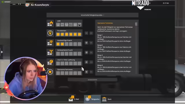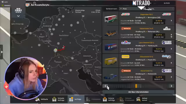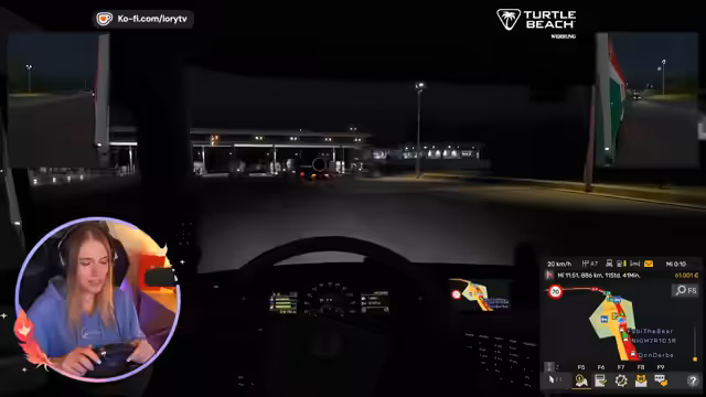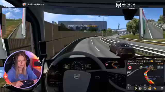 01:23:31Die Gruppe bricht von Berlin aus auf und bewältigt die ersten Herausforderungen: Der Streamer muss Bremsen, Blitzer vermeiden und die Navigation bedienen. Es kommt zu Verwirrung bei der Annahme von Frachtaufträgen, da Smurf nicht das nötige Level besitzt. Gleichzeitig werden Schlafmechaniken des Spiels thematisiert, als der Streamer Müdigkeitssymptome zeigt und Strafzettel für Nichteinhaltung der Ruhezeiten kassiert.