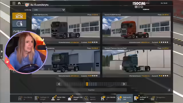 01:06:10Der Streamer diskutiert zunächst Spielmechaniken wie den Geschwindigkeitsbegrenzer und die LKW-Auswahl. Er kauft einen LKW für 36.000 Einheiten und organisiert eine Garage in Berlin. Anschließend richtet er den Konvoi ein und erklärt den Teilnehmern die Anforderungen, insbesondere dass ein eigener LKW für Auftragsannahme nötig ist. Dabei treten erste technische Schwierigkeiten mit der Tonübertragung über den Ingame-Funk auf, die jedoch gemeinsam analysiert werden.