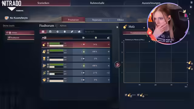 03:38:44Während des Spiels führt ein Planungsfehler zu einem erheblichen finanziellen Verlust. Die Streamerin bezahlt eine gefesselte Königin mit 10.000 Münzen für ihre Abdankungsrede, was ihre Stadt an den Rand des Bankrotts bringt. Sie ist verärgert über den Fehler und den Preis, was die Chat-Interaktion deutlich ansteigen lässt. Im Anschluss versucht sie verzweifelt, eine neue Insel für die Bierproduktion zu finden, während sie gleichzeitig auf der Hauptinsel ihre Produktion weiter ausbaut und die Bedürfnisse der Bewohner im Auge behält.