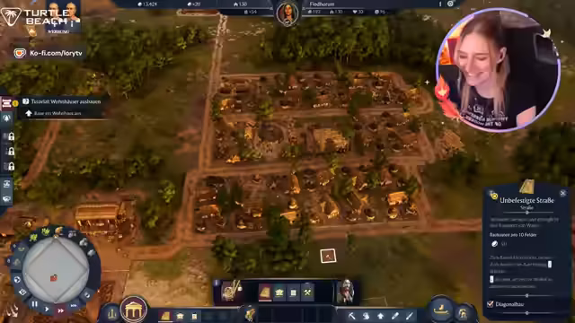 03:16:16Die Streamerin widmet sich der strategischen Planung zur Herstellung von Käse und Bier in Anno 1800. Sie identifiziert die benötigten Ressourcen und Gebäude, wie z.B. Ochsen für Milch und eine Brauerei, stößt jedoch auf Probleme bei der Platzierung von Produktionsgebäuden und der Beschaffung von Holz. Der Chat wird als wertvolle Informationsquelle genutzt, um Blaupausen und Bedürfnisse der Arbeiter zu klären. Nach anfänglichen Schwierigkeiten entscheidet sie sich, eine neue Insel zur Bierproduktion zu suchen, da die aktuelle Insel über keine entsprechenden Ressourcen verfügt.
