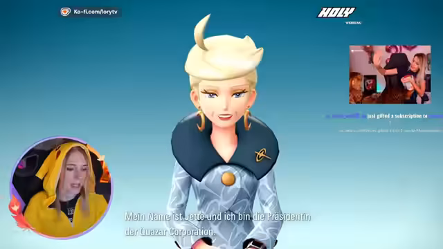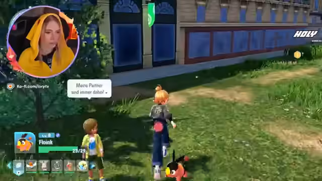 00:37:44Der Stream startete in Illumina City, wo die Protagonistin Jette als Präsidentin der Quasar Corporation vorstelligte und die Vision einer friedlichen Koexistenz zwischen Menschen und Pokémon darlegte. Die Hauptfigur Lori wurde als neue Pokémon-Trainerin eingeführt und erhielt von ihrem Begleiter Alton das Starterpokémon Floink. Die erste Aufgabe bestand darin, die gestohlene Reisetasche zurückzuholen, was zu einem Kampfsektor führte.