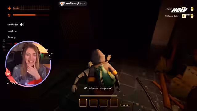 00:54:47Das gemeinsame Spiel beginnt. Snow und der Streamer kennen sich schon länger aus anderen Spielen wie GTA RP und Habbo Hotel, doch eine dritte Person namens Cosi ist neu. Nach anfänglichen technischen Schwierigkeiten im Discord und der Steam-Freundschaft wird das Spiel gestartet. Die vier Streamer bilden ein Team und müssen in einem horrorähnlichen Setting zusammenarbeiten. Es gilt, Gegenstände zu finden und einem Monster zu entkommen, was schnell zu Chaos und unabsichtlichen Tötungen untereinander führt.