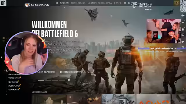00:06:21Der Stream beginnt mit einem entspannten Morgen. Die Streamerin hat ihren Kaffee aufgestellt und ist noch etwas müde. Sie eröffnet den Chat mit einem freundlichen Gruß und teilt mit, dass sie vorhat, ihren Tag mit den Zuschauern zu verbringen. Nach einigen Begrüßungen erwähnt sie, dass sie viel Battlefield 6 gesuchtet hat und nun überlegt, ob sie ihre Haare offen lassen oder Zöpfe machen soll, was zu einer Diskussion über Gamer-Frisuren führt.