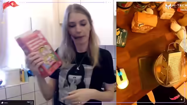 01:21:40Es wird ein gemeinsames Kochen geplant, bei dem jeder etwas mitbringen kann. Die Streamerin bot an, Snacks beizusteuern, während jemand anderes Zutaten für Pizza bereitstellt. Es werden Muffins gebacken, wobei die Streamerin überlegt, wie viele sie benötigt und ob sie Brownies zusätzlich zubereiten soll. Sie äußert Bedenken bezüglich der Menge an Zucker und Eiern in Bezug auf die Größe der Schüssel. Die Streamerin experimentiert mit der Käsekuchenfüllung, ist sich aber unsicher, wie lange sie die Zutaten verquirlen muss und bittet den Chat um Rat. Sie googelt das Rezept, da sie keine flüssige Butter hat und diese in der Mikrowelle schmelzen muss. Es wird über die Arbeitszeiten von Köchen diskutiert, während die Streamerin die Butter schmilzt und darauf achtet, dass sie nicht zu stark erhitzt wird. Sie gibt zu, dass sie nur Koch ist und kein Bäcker.