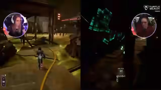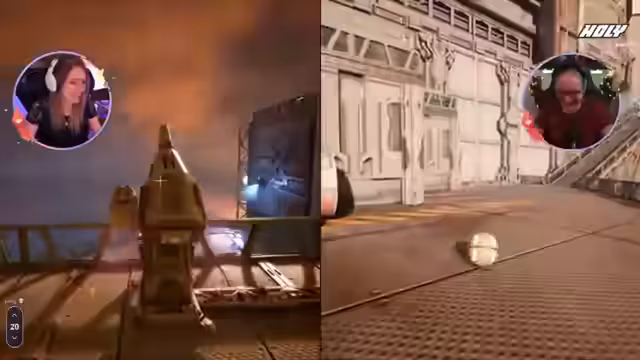 03:08:38Nach dem technischen Problem mit Assassin's Creed wechselt der Stream komplett das Thema. Die Streamerin und ein interaktiver Partner testen VR-Technologie, bei der physische Bewegungen ins Spiel übertragen werden. Die Stimmung ist humorvoll und desorientiert, während die Spieler versuchen, sich in der virtuellen Umgebung zurechtzufinden und Hindernisse zu überwinden.