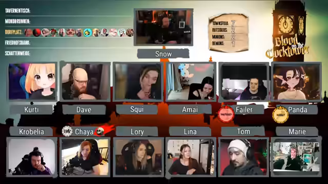 03:31:40Der Stream beginnt mit der Reflexion über das vorangegangene Spiel, bei dem alle Teilnehmer das Erdbeerfest überlebt haben, aber viele Mitspieler gestorben sind. Es werden theoretische Modelle diskutiert, insbesondere zu der Figur des Monks, der eine Person vor dem Dämon retten kann. Die Spieler spekulieren über einen Godfather-Kill und die mögliche Selbstvergiftung einer Widow, die zu Beginn des Spiels die Rollenverteilung im Dorf beeinflusst hat. Die aktuelle Situation wird analysiert, insbesondere die Tatsache, dass Tom bei dem Angriff überlebt hat, was verschiedene Erklärungen zulässt.