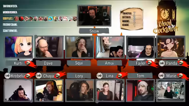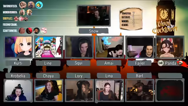 08:11:03Die Diskussion eskaliert zur Abstimmung. Die Streamerin nominiert erneut Kurti, weil sie deren Verhalten und Aussagen für so suspekt hält, dass eine Exekution der einzig sinnvolle Schritt sei. Kurti nominiert sich schließlich selbst, um ihren Status als Juggler beweisen zu lassen, falls sie diese Rolle wirklich hat. Nach einer intensiven Diskussion stimmen die lebenden Spieler mehrheitlich für Kurti. Ihre letzten Worte deuten darauf hin, dass sie sich selbst entweder als Juggler oder als It identifiziert und droht, im Fall ihrer Rolle als It das gesamte Team mit in den Untergang zu reißen.