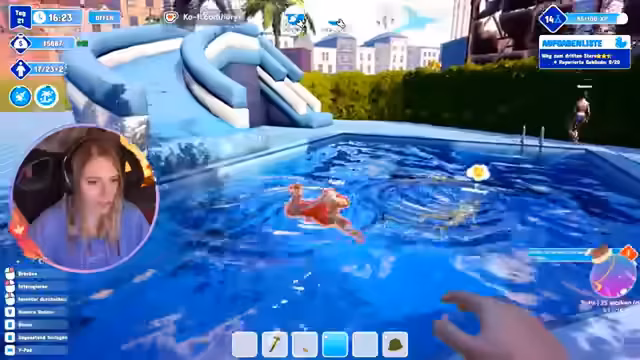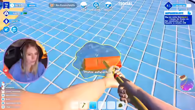 04:35:04Die Streamerin beobachtet den lauten und chaotischen Betrieb im Schwimmbad-Park. Sie konzentriert sich auf die Versorgung der Gäste mit Getränken wie Zitronenlimonade und Hotdogs, füllt Snacks auf und kümmert sich um die Kasse. Dabei gibt es Probleme mit Gerüchen, kaputten Toiletten und illegal rutschenden Gästen. Sie reagiert mit witzigen Kommentaren auf die Vorkommnisse, wie z.B. Malte, der immer stinke, und sorgt für eine unterhaltsame, chaotische Atmosphäre.