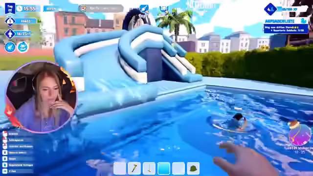 03:33:06Die Streamerin berichtet von Todesfällen im neuen Bereich des Waterpark-Simulators und sucht nach Lösungen für das Problem. Es wird spekuliert, ob die Rutsche die Ursache ist und verschiedene Lösungsansätze werden ausprobiert. Die Zuschauer werden aufgefordert, aktiv am Chat teilzunehmen. Es wird auf die Möglichkeit hingewiesen, das Schwimmbad im Spiel mit dem Befehl "!visit M/F" zu besuchen. Die Streamerin interagiert mit den Zuschauern im Spiel, indem sie ihnen Getränke und Hotdogs verkauft und sie vor Gefahren rettet. Es werden illegale Aktivitäten im Spiel entdeckt, wie das Fotografieren anderer Charaktere. Die Streamerin kämpft mit den Herausforderungen des Spiels, wie dem Tod von Charakteren und der Sauberhaltung des Schwimmbads. Sie äußert ihren Frust über die fehlerhafte Rutsche und überlegt, diese zu entfernen. Trotz der Probleme versucht sie, den Zuschauern eine unterhaltsame Zeit zu bieten und bezieht sie aktiv in das Spielgeschehen ein. Es wird überlegt, Rettungsschwimmer einzustellen, um die Sicherheit im Schwimmbad zu erhöhen.