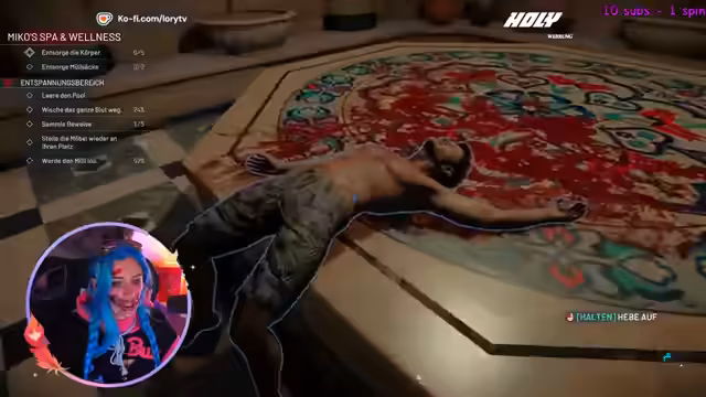 04:01:10Nachdem die erste Mission in "Crime Cleaner" erfolgreich abgeschlossen wurde, erhält der Streamer eine Belohnung von über 8.000 Dollar und zahlreiche Erfahrungspunkte. Es wird festgestellt, dass es noch weitere Geheimnisse und Aufgaben gab, die nicht alle entdeckt wurden. Der Fertigkeitsbaum wird vorgestellt, in dem Punkte in Fähigkeiten wie Mopp-Reinigung, Reinigungsgeschwindigkeit und Schwamm-Effektivität investiert werden können. Der Streamer entscheidet sich, Punkte in die Mopp-Verschmutzung zu investieren, um langsamer schmutzig zu werden. Die nächste Aufgabe besteht darin, ein Handy zu finden, das zu einer neuen Mission führt. Das Handy gehört Jim, der den Streamer beauftragt, für ihn zu putzen, da der tote Kerl im Kofferraum für ihn gearbeitet hat. Der Streamer muss diese Aufgabe annehmen, um seine Tochter zu unterstützen. Die neue Mission, "Blutprobe", beginnt in einem Spa, wo erneut Spuren beseitigt und Beweise gesammelt werden müssen. Der Streamer entdeckt einen Schlüssel zu einem Schließfach und weitere versteckte Gegenstände, die gestohlen werden können. Die Reinigung des Spas erweist sich als komplex, da es viele Flecken und Müll gibt, die beseitigt werden müssen. Der Streamer nutzt einen Hochdruckreiniger für größere Flecken und muss dabei aufpassen, dass der Mopp nicht zu schnell schmutzig wird. Die Mission führt durch verschiedene Bereiche des Spas, einschließlich Umkleidekabinen und Toiletten, wo weitere Beweise und wertvolle Gegenstände gefunden werden. Die Herausforderung besteht darin, alle Spuren zu beseitigen und gleichzeitig die Umgebung zu erkunden, um alle Geheimnisse zu lüften.