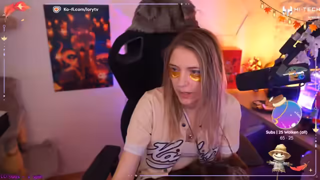 00:07:37Der Stream beginnt mit einer enthusiastischen Begrüßung der Zuschauer zu einem „wunderschönen Freitag, Feierabend, Happy Halloween oder whatever“. Die Stimmung ist ausgelassen und festlich, passend zum Halloween-Thema. Lori trägt bereits eine „extrem Horror-Maske“, die sie selbst erschreckt hat, als sie in den Spiegel blickte. Ein wiederkehrender, mysteriöser Ton im Hintergrund sorgt für zusätzliche Gruselstimmung und Verwirrung, da die Ursache, möglicherweise Chrome oder Discord-Benachrichtigungen, nicht sofort gefunden werden kann. Trotzdem ist die Vorfreude auf den Abend spürbar, und es wird angekündigt, dass einiges geplant ist, darunter ein „Baitrad“ und die gemeinsame Vorbereitung für Halloween.