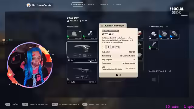 10:30:47Nach einer intensiven Kampfsequenz, in der die Streamerin und ihr Team mehrere Gegner ausschalten, können sie erfolgreich Loot sammeln und einen Teil der Quest abschließen. Sie sind erfreut über den Erfolg und die gesammelten Gegenstände. Anschließend widmen sie sich der Inventarverwaltung, müssen Gegenstände verkaufen oder recyceln, um Platz zu schaffen und Geld zu verdienen. Die Streamerin überlegt, wie sie ihre Lagerkapazität erweitern kann, um mehr Loot mitnehmen zu können. Sie stellt fest, dass sie viele Stoffe und Gummiteile besitzt, die recycelt oder verkauft werden können. Trotz der Müdigkeit nach einem langen Stream überlegt sie, ob sie weiterspielen soll, entscheidet sich aber schließlich, den Stream zu beenden, um ihre Augen zu schonen und sich zu erholen.