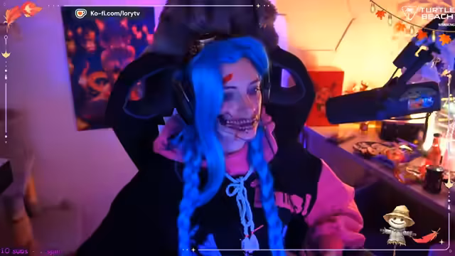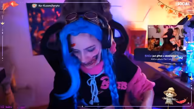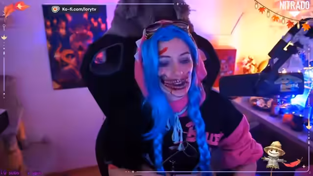 00:21:13Neben dem Baitrad wird ein Giveaway angekündigt, das im Laufe des Abends verlost wird und bei dem sich die Zuschauer noch eintragen können. Lori plant, sich gemeinsam mit den Zuschauern für Halloween fertig zu machen, da sie ihr Kostüm noch nicht vollständig trägt. Sie enthüllt, dass sie sich als „Horror Jinx“ verkleiden wird, inspiriert von der Figur Jinx, aber mit einem gruseligen Twist. Dafür hat sie bereits Kontaktlinsen, Kunstblut und andere Accessoires vorbereitet, um die Verwandlung on-stream zu zeigen. Der Prozess des Schminkens und Anziehens wird live mitverfolgt, was den Zuschauern einen Einblick in die Entstehung des Kostüms ermöglicht.