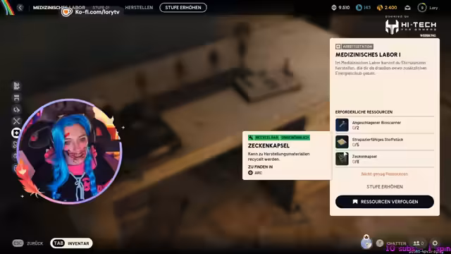 09:19:34Nach einer erfolgreichen Loot-Phase, in der ein wertvoller Waffenplan und andere Gegenstände gesammelt wurden, kehrt die Streamerin zur Basis zurück. Sie stellt fest, dass eine Quest möglicherweise nicht abgeschlossen wurde, ist aber zufrieden mit dem erzielten Loot. Der gefundene Waffenplan wird als sehr nützlich eingestuft, und es werden Überlegungen angestellt, wie die gesammelten Gegenstände am besten genutzt werden können. Insbesondere wird diskutiert, wie mechanische Komponenten hergestellt werden können, um eine neue Waffe zu craften. Die Streamerin plant, ihre Werkstatt auf Stufe 2 zu bringen, um bessere Waffen herstellen zu können, stellt jedoch fest, dass dafür bestimmte Ressourcen wie Wespentreiber und Kühlkörper benötigt werden, die noch nicht verfügbar sind. Auch die Reparatur von Gegenständen und die Verwaltung des Inventars stehen im Fokus.