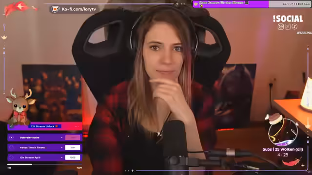 00:25:30Nach einem Stromausfall, der das komplette Setup lahmlegte, berichtet Lory über die aktuelle Situation mit ihrer Kamera und dem Hintergrund. Sie erwähne zudem den Kauf eines neuen orthopädischen Kissens und eines Staubsaugers, da ihr alter Gerät den Anforderungen nicht mehr gerecht wurde. Die Wohnungseinrichtung wird als laufendes Projekt beschrieben, bei dem sie nach und nach ihre Kartons auspackt und neue Möbel wie einen Schreibtisch-LED-Rahmen plant.