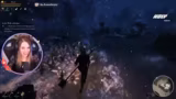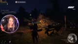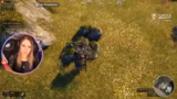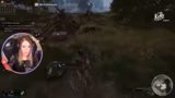 03:21:07Ein unvorhergesehener Angriff von zwei Wölfen unterbricht das Sammeln. Die Streamerin kämpft, die Wölfe zu bekämpfen, und stellt fest, dass diese auch im Wasser nachjagen können. Trotz anfänglicher Schwierigkeiten gelingt es einem Teammitglied, einen Wolf zu töten. Der Kadaver wird gelootet. Parallel dazu wird das Teamwork betont, wobei humorvolle Kommentare zur Arbeitsverteilung im Spiel ausgetauscht werden. Die Truhe für gesammelte Ressourcen wird langsam gefüllt.