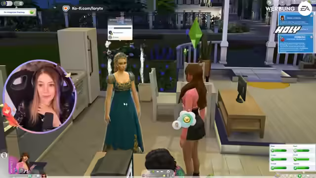 01:38:21Im weiteren Verlauf des Streams steht das Ausbauen sozialer Kontakte im Fokus, um die Karriere im Adel zu festigen. Die Figur sucht gezielt die Nähe zu Nachbarn und anderen Adligen, um sich vorzustellen, Allianzen zu schließen und sich deren Rat zu sichern. Dabei werden Strategien wie das Höfische Gerüchte verbreiten und das Lauschen, um Geheimnisse anderer Sims aufzudecken, erprobt. Auch die Duell-Fähigkeit wird entdeckt, um Simoleons zu gewinnen und den eigenen Ruf zu stärken, während die Walzer-Fähigkeit kontinuierlich trainiert wird.