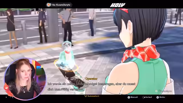 07:53:12Da das Spiel mit dem PC nicht funktioniert, startet die Streamerin Digimon Story: Cyber Sleuth. Nach der Installation beginnt das Intro, in dem die Geschichte eines Agenten in einer von Anomalien heimgesuchten Stadt erzählt wird. Die Streamerin beginnt ein neues Abenteuer als Agentin und navigiert durch die erste Mission, wobei sie auch die Steuerung mit einem Controller in Betracht zieht.