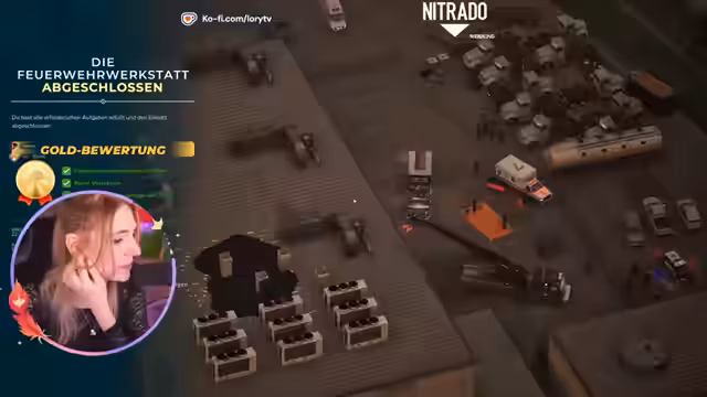 00:51:43Der Stream beginnt endlich mit der Kooperation. Lory startet 'Firefighting Simulator: Igniter' und absolviert das Tutorial, während sie die Steuerung und die Spielmechaniken erklärt. Sie ist beeindruckt von der Grafik und den detaillierten Szenarien und erinnert sich an ihre positive Begegnung mit dem Entwicklerteam auf der Gamescom. Während des Tutorials kommuniziert sie intensiv mit dem Chat und ihrem Partner, um sich auf den bevorstehenden Mehrpartier-Modus vorzubereiten.