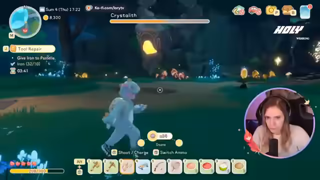 02:43:46Nachdem die Streamerin eine neue Schleuder gecraftet hat, macht sie sich auf den Weg zur Mine, um Ressourcen abzubauen. Dabei stellt sie fest, dass Kackhaufen nicht nur Deko sind, sondern abgebaut werden können, was sie als sehr praktisch empfindet. Sie sammelt Materialien wie Quarz und Eisen, entdeckt seltene Blumen und Pilze und zeigt, wie man Inventarplätze optimal nutzt. Gleichzeitig erwähnt sie, dass ein previously kritisiertes Feature, das Anheften von Gegenständen, im finalen Spiel hinzugefügt wurde.