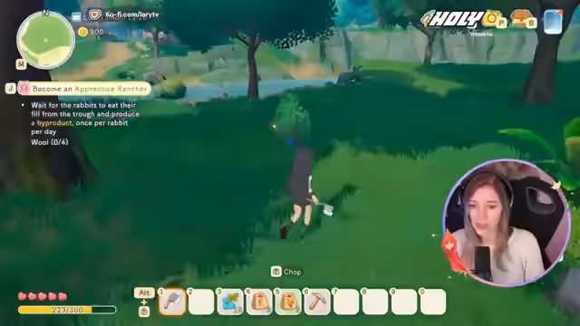 02:32:42Ein unerwartetes Geräusch stellt sich als das Geräusch von Kreide auf einer Tafel heraus, auf der Daily Quests angezeigt werden. Eine Quest erfordert das Herstellen eines "Bright Little Light Egg". Die Streamerin erkundet weiter und stößt auf einen Tierladen, wo sie eine große Auswahl an Haustieren, darunter auch Hunde, sieht. Sie beschließt, ein süßes Eichhörnchen zu streicheln und mit einer Beere zu füttern, und plant es später zu adoptieren, da es ihr sehr gefällt. Sie stellt zudem fest, dass man Tiere auch anziehen und mit Gegenständen ausstatten kann.