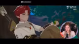 02:56:54Die Streamerin besucht den König in seinem Schloss und stellt fest, dass die soziale Bindung sich positiv entwickelt, da der König sie nach langer Zeit wiedererkennt und sie eine Angel als Geschenk erhält. Im Anschluss startet sie eine Quest, die das Angeln von Fischen erfordert. Während der Durchführung eines anderen Auftrags, der die Reparatur einer magischen Brücke vorsieht, wird sie unvorhergesehen in einen Bosskampf verwickelt, den sie knapp übersteht.