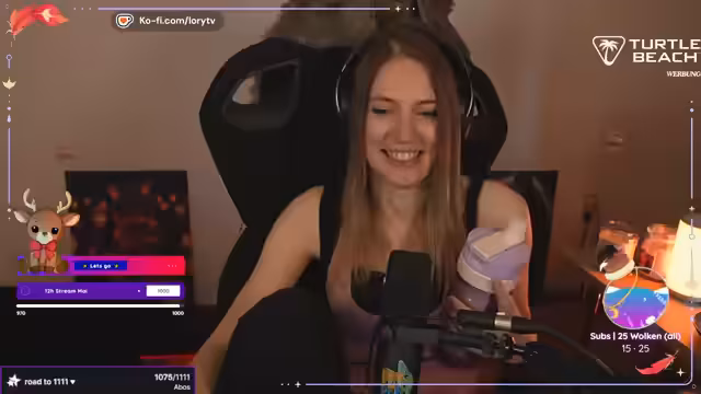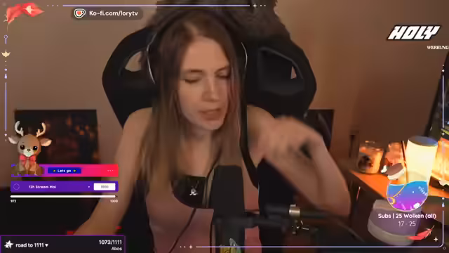 00:03:45Lori startet den Stream mit einem Rap, in dem sie über ihre Freude am Streamen spricht, sie betont, dass sie keinen Cheat oder Rush macht, sondern die Zeit nimmt, die sie braucht. Sie zeigt sich nach dem Duschen frisch und freut sich, die Community begrüßt sie mit verschiedenen Namen. Dabei erwähnt sie, dass sie Schuhe in der Waschmaschine hat, weil sie mit dem Hund im Wald war und diese verschmutzt hat. Lori stellt auch fest, dass sie auf Kaffee steht und verschiedene Getränke hat.