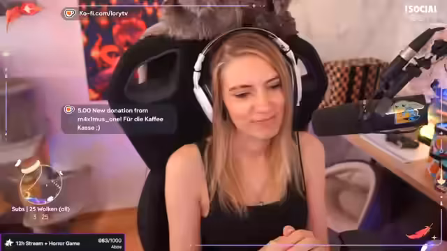 01:55:26Der Streamer spricht über ihren bevorstehenden Geburtstag und erwähnt, dass sie noch keine Geschenkewünsche hat. Anschließend präsentiert sie ihre Ausrüstung, einen Stuhl von Recaro und Turtle Beach-Kopfhörer, die ihr eine angenehme Streaming-Erlaubnis bieten. Zum Schluss verabschiedet sie sich kurz, um ihren Hund zu füttern, und verspricht, bald zurückzukehren.