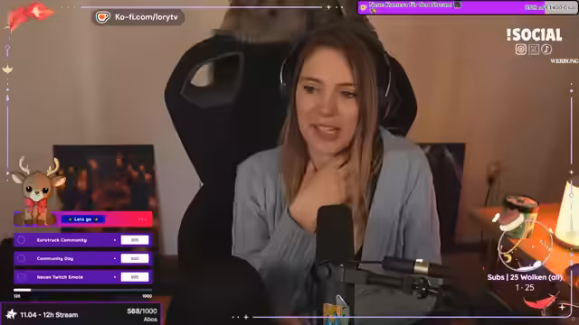 00:19:55Das Gespräch wendet sich privaten und organisatorischen Themen zu. Nach einem Umzug muss die Streamerin ihr Gewerbe beim Finanzamt ab- und neu anmelden, was als aufwendig und kostspielig beschrieben wird. Sie äußert ihre große Dankbarkeit für ihren Steuerberater, der heute Twitch-Kanäle gut versteht. Zudem geht sie auf eine technische Unannehmlichkeit ein: das Display ihres Setups wurde durch ihren Hund verschoben, und sie sucht nach einem bestimmten Gegenstand. Sie erwähnt gesundheitliche Probleme, wie Bauchkrämpfe und die Suche nach ihrer privaten Steuererklärung, und spricht über ihre Katzen, die faul geworden zu sein scheinen.