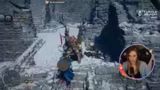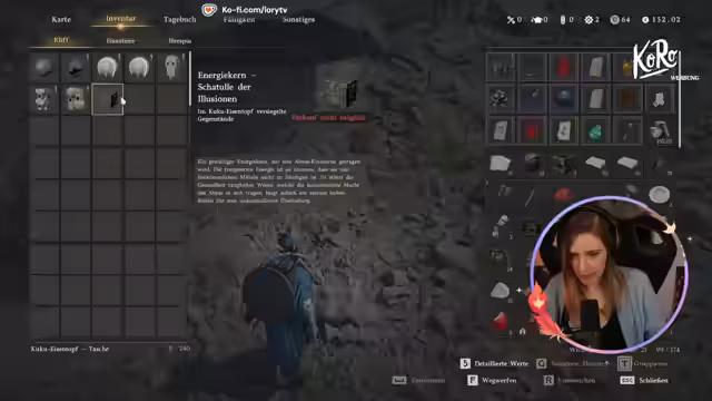 01:19:01Das Vorrücken in der Spielwelt konzentriert sich auf die Beschaffung von Essen und das Erreichen des Bosskampfes. Nach einem erfolglosen Versuch, bei einem Straßenverkäufer Nahrung zu kaufen, kehrt die Streamerin zum Basislager (Camp) zurück, um dort Essen herzustellen. Nachdem sie erfolgreich gegrilltes Fleisch hergestellt hat, macht sie sich auf den Weg zum Bossgebiet, einem Berggelände. Hier muss sie eine besondere, kristallhaltige Erzader abbauen, was sich als fummelig und enttäuschend erweist, da sie trotz anfänglicher Erwartungen nur wenige Ressourcen findet.