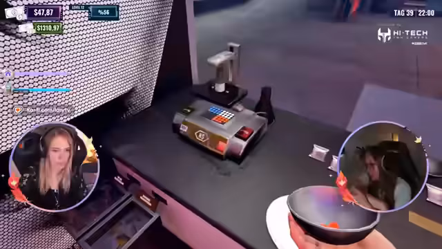 00:52:04Nach dem Gesprächsteil geht es endlich ins Gameplay von Nightclub Simulator. Die Streamerin und ihr Mitspieler Yadi setzen im bereits aufgebauten Nachtclub fort. Sie tauschen sich über die aktuellen Finanzen aus und erkennen, dass sie reich sind, aber trotzdem in wichtige Upgrades investieren müssen. Das Ziel ist es, den Club weiterzuentwickeln und neue Rezepte für ihre Drogenwaren zu erschließen. Die anfängliche Unsicherheit über die genauen Herstellungsprozesse für neue Produkte wie starken Pilzextrakt zeigt den spielerischen Aspekt der Herausforderung.