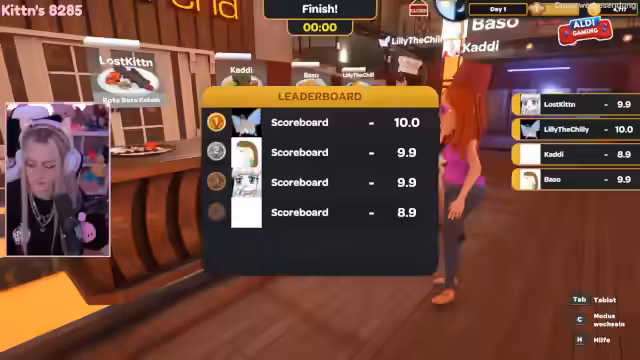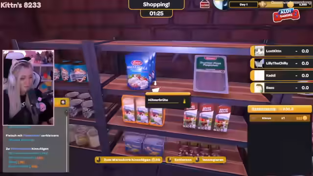 01:52:49Es wird die Vorbereitung für den Kebab Chefs Koop-Stream mit Ed Kaddi und Lily the Chili angekündigt. Es wird kurz erwähnt, dass man schon wieder auf die Toilette muss. Der Discord wird gejoint und die Voice-Einstellungen werden überprüft. Es wird die Vorfreude auf das gemeinsame Spielen betont, da noch nie ein Koop-Spiel gespielt wurde. Das Spiel Zort wird erwähnt. Es wird kurz überlegt, wie man die Sprache im Spiel auf Deutsch umstellt, da es auf Polnisch eingestellt ist. Es wird überlegt, ob man den Twitch-Chat ins Spiel einbinden soll, aber Bedenken geäußert, dass der Chat gemeine Sachen machen könnte. Es wird die Koch-Arena im Spiel diskutiert, in der man gegeneinander antritt. Es werden die Mode-Settings im Spiel angepasst, um die Cooking- und Shopping-Time zu verlängern. Es wird festgestellt, dass man im Spiel seinen Charakter anpassen kann. Es wird ein gemeinsamer Chat für die Streamerinnen erstellt. Es wird kurz die falsche Schreibweise von Lost Kitten diskutiert.