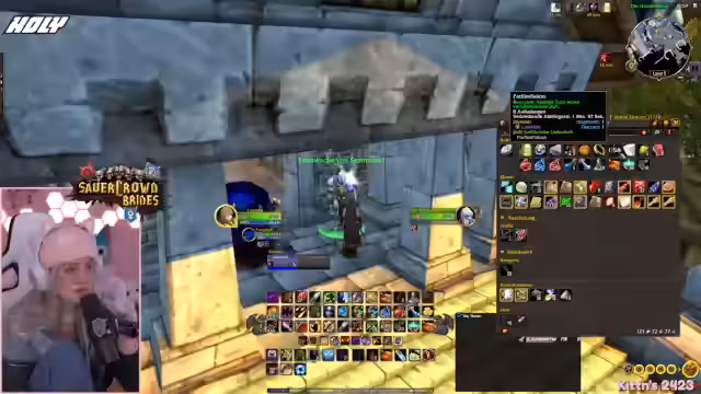 00:41:53Im Spiel geht es für den Streamer und seinen Mitspieler los. Es wird ein gemeinsamer Quest-Grind in World of Warcraft gestartet. Der Streamer koordiniert den Mitspieler, der neu im Spiel ist, und weist ihn auf wichtige Quests und den Austausch von Ressourcen hin. Sie besprechen den weiteren Weg zu verschiedenen Orten, wie Stormwind und Teldrassil, um Quests anzunehmen und abzugeben. Der Streamer plant für später einen gemeinsamen Tempel-Run mit weiteren Mitspielern.