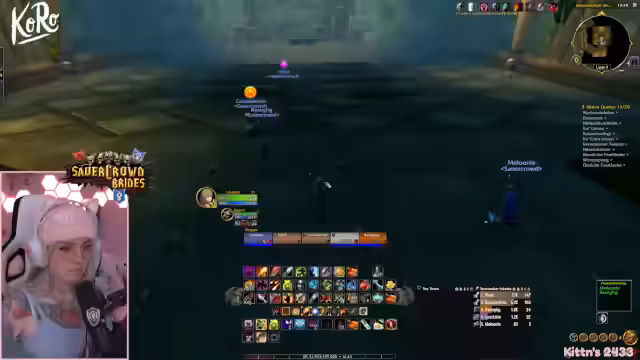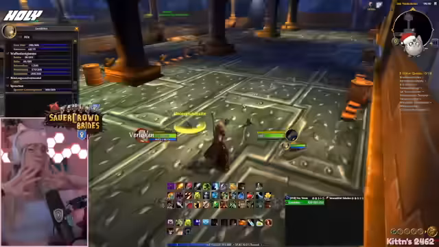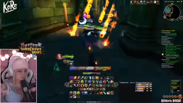 03:53:09Die Gruppe steigt in einen Dungeon ein, um Trinkete zu farmen und diequests abzuarbeiten. Der Streamer wechselt zur Zaubergeschichte und findet einen glänzenden Splitter. Es werden Klassenquests für Level 50 erwähnt, die für den Zugang zum Tempel benötigt werden. Während des Dungeons werden Taktiken besprochen, wie z.B. der gezielte Einsatz von AOE-Schaden und die Notwendigkeit, Mana- und Aggro-Management zu beachten, um den Wipe zu vermeiden.
