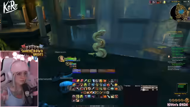 08:06:10Die Gruppe betritt einen gefährlichen Raum, in dem mehrere Deathwalker-Gegen spawnen. Wenn ein Deathwalker stirbt, spawnert ein Geist, der extrem schädlichen Bereichsschwarz verursacht. Der Streamer gibt die Anweisung, immer einen guten Abstand zu diesen Geisten zu halten. Um die Kontrolle zu behalten, werden Feinde mit 'Totenkopf' und 'X' markiert und gezielt isoliert. Außerdem kann eine Priester-Fähigkeit namens 'Schackle' genutzt werden, um einzelne Gegner für kurze Zeit unangreifbar zu machen, um die Komplexität der Kämpfe zu managen.