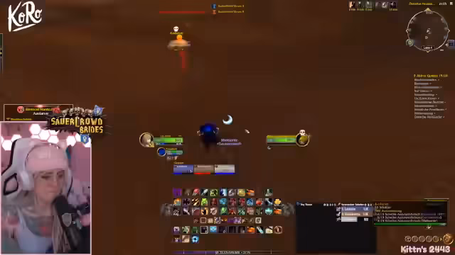 08:49:12Nach einem unvorhergesehenen Ausstieg aus der Gruppe wegen eines technischen Problems, fliegt die Gruppe nach Desolace. Auf dem Weg dorthin wird über verschiedene Loot-Optionen gesprochen, darunter ein spezieller Ring, der für den Streamer als weniger nützlich erachtet wird und einem anderen Gruppenmitglied überlassen wird. Die Stimmung ist locker, und es gibt Diskussionen über das Spielverhalten von Mitspielern. Nach längerer Reisezeit beschließt die Gruppe eine Essenspause, bei der die Streamerin und andere Mitglieder ihre Lieferungen mitteilen und persönliche Absagen für den weiteren Abend kündigen, um ihre Gesundheit schonen.
