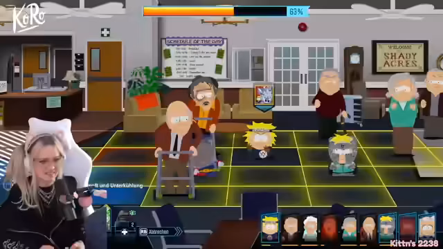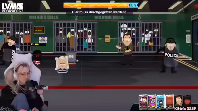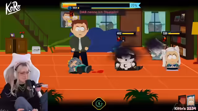 01:47:43Im weiteren Verlauf steht ein Kampf gegen das Team 'Chaos' an. Die Streamerin und ihr Team 'Coon & Friends' müssen eine strategische Vorgehensweise wählen. Während des Gefechts werden ihre Teammitglieder wie Cartman und Timmy als Opfer eingesetzt, um die gegnerischen Lakaien abzulenken und Schaden zu nehmen. Die Streamerin selbst nutzt ihre Fähigkeiten, um die Hauptgegner zu eliminieren. Nach einem knappen Sieg feiern sie den Erfolg und looten die Gegner.