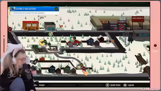 00:36:03Während des Spiels verfolgt die Streamerin verschiedene Missionen. Eine Hauptaufgabe ist das Sammeln von Katzen und das Verteilen von Visitenkarten in der Stadt. Die Handlung des Spiels ist dabei eine Mischung aus Gameplay und Erzählung. Sie interagiert mit verschiedenen Charakteren wie Mr. Adams und der Familie Cartman, die in komplexen und skurrilen Szenarien verstrickt sind. Der Fokus liegt auf der Fortführung der Geschichte und dem Absolvieren von Aufgaben wie dem Beschaffen von Gegenständen wie einem Kondom für Opa.