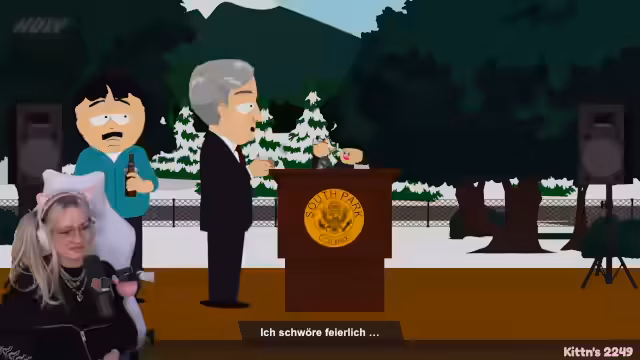 08:47:36In der Endphase des Kampfes konfrontiert Eric Cartman die 'Freedom Pals' mit seinem gänzlich verrückten Plan. Er will die Handelskammer benutzen, um als Bürgermeister zu kandidieren und die Verbrechensrate hochzutreiben, um so die Stadt zu 'retten'. Sein Masterplan ist es, durch die Wahl zum Bürgermeister zu kommen, eine Armee aus mutierten Katzen und Sechstklässlern zu befehligen und so für 'ewiges Weihnachten' zu sorgen. Nach einem letzten erbitterten Kampf und dem Stoppen des Hauptprozessors gelingt es dem Streamer und den 'Freedom Pals' jedoch, Cartmans Plan zu vereiteln und die Situation wieder unter Kontrolle zu bringen.