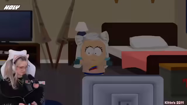 00:34:03Nach kurzer Zeit beginnt die Streamerin mit dem eigentlichen Gameplay von South Park. Sie hat den Controller als Steuerung gewählt und möchte mit den Zuschauern im Spiel weitermachen. Kurz darauf treten jedoch technische Schwierigkeiten auf. Ihr Beacon zeigt fälschlicherweise an, dass sie gemutet ist, obwohl dies nicht der Fall ist, was sie frustriert. Trotz der Probleme versucht sie, das Spiel weiterzuspielen.