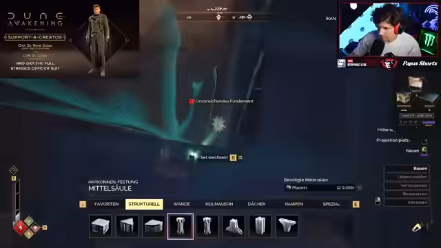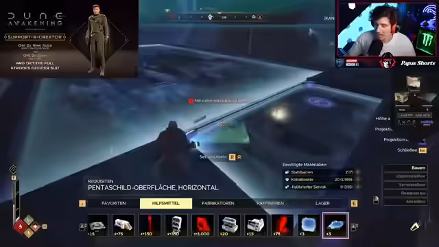 04:16:50Bei der Basiserweiterung stößt der Streamer auf bauliche Herausforderungen, insbesondere bei der Platzierung von Strukturen und der Begrenzung der Möglichkeiten durch das Bausystem. Er muss Ressourcen wie Aluminium effizient verwalten und transportieren, was den Bau kompliziert macht. Gleichzeitig bemerkt er, dass viele Spieler in der Deep Desert unterwegs sind, was die Ressourcensuche erschwert.