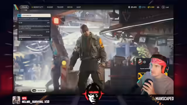 01:04:29Das Update von 10,1 GB wird heruntergeladen und installiert. Nach Abschluss starten Streamer und Community in ein gemeinsames Raid. Im Spiel wird das neue Event für die Materialspende sichtbar, welches 0% des Ziels erreicht. Der Streamer kauft einen neuen Skin im Shop und stellt fest, dass er nun offiziell auf Platz 2 der Rangliste steht. Er bereitet sich darauf vor, neue Waffen und Blaupausen in der Map zu finden.