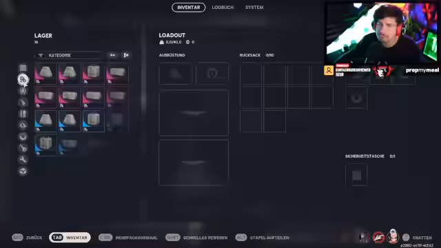 00:11:47Der Stream beginnt mit dem Einloggen in Esperanza, nachdem die wöchentliche Runde zurückgesetzt wurde. Streamer ist bereits zwei Ränge in der Rangliste aufgestiegen und nimmt wöchentliche Prüfungen an. Hierfür müssen Prüfungen wie Hornissen oder Vorräte durchgespielt werden. Belohnungen wie zufällige Ausrüstungskisten erhält man sofort nach Abschluss, während Rangpunkte für die wöchentlichen Bestenlisten vergeben werden.