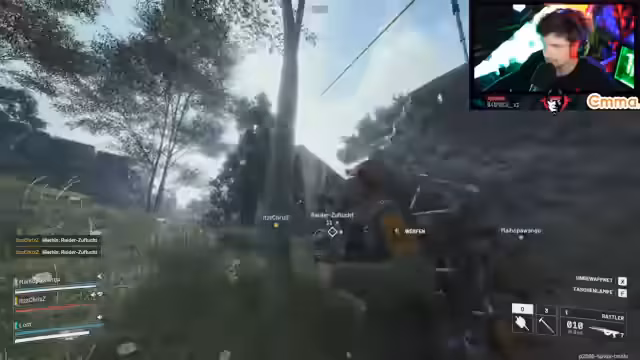 04:17:02Die Kämpfe im Bunker eskalieren, als ein neues Team von oben in den Raum einbricht und das Ziel hat, das Streamer-Team auszuschalten. Der Streamer berichtet über einen chaotischen Nahkampf, bei dem er Gegner mit Stungranaten betäubt und um sich schuss. Er gibt laute, taktische Anweisungen an sein Team, während die Situation unübersichtlich wird. Am Ende wird ein Spieler von Gegnern durch Treppen hindurch mit einem Shotgun getötet, was als frustrierendes und ungerechtes Ende des Kampfes empfunden wird.